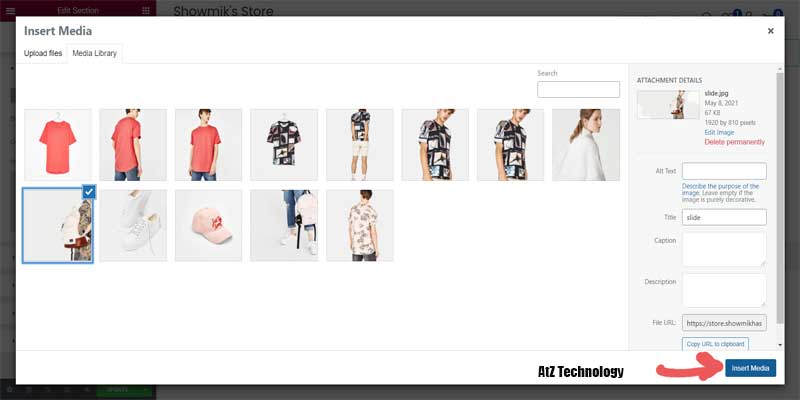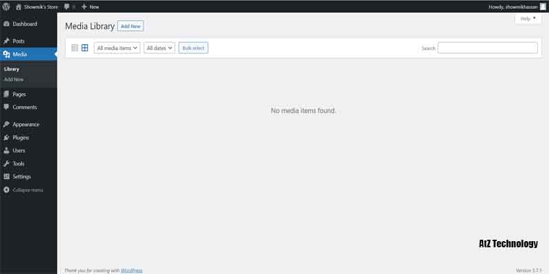 Then the third option is your media option, so all those different media files, all these different images you see on your website. Everything will be present here. So if you want to upload a new media file, you can do it from yours.