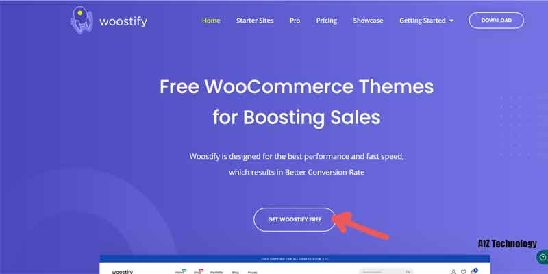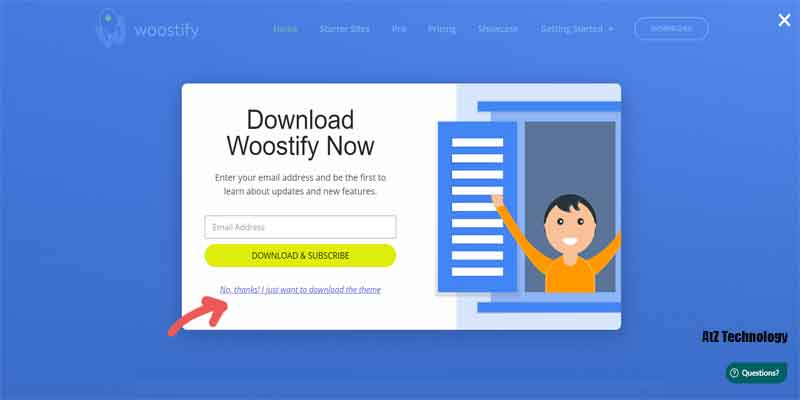 So, go to https://woostify.com/ and click on Get Woostify Free. A popup will come to you to put your email and subscribe to their newsletter and download the theme.