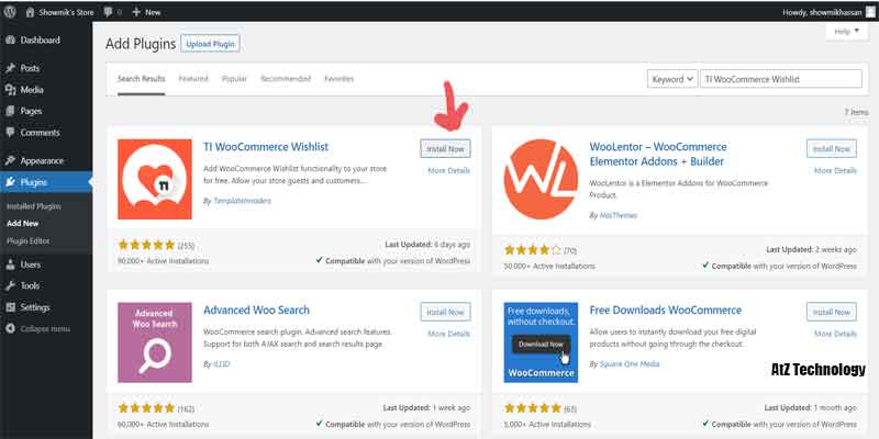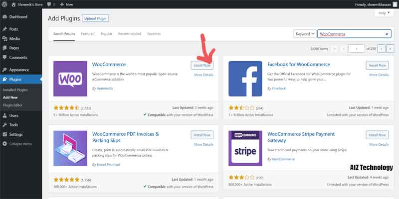 Now, for the required functionalities for an eCommerce website, you need some plugin to install. Go to the plugin section and search for each of them and install and activate as well.