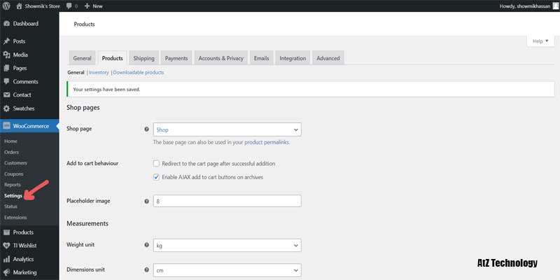Now head to the products tab. Not many things need to be changed. You can change the weight and dimension unit from here. Now one of the important sections is the shipping section.
