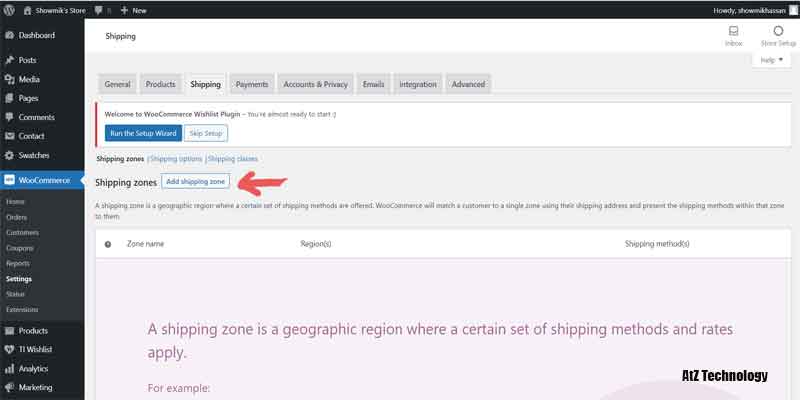 Let’s head towards the shipping tab. You can add different shipping zones. Click on Add Shipping Zone and fill the form. Insert the Zone Name, select your Zone Regions, and now click on Add Shipping Method. You can choose three options from there.