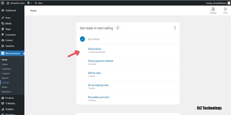 It’s the must and most important plugin. Without it, you can’t be able to sell your products to customers. Now go to the WooCommerce section from your dashboard, and a setup wizard will appear.