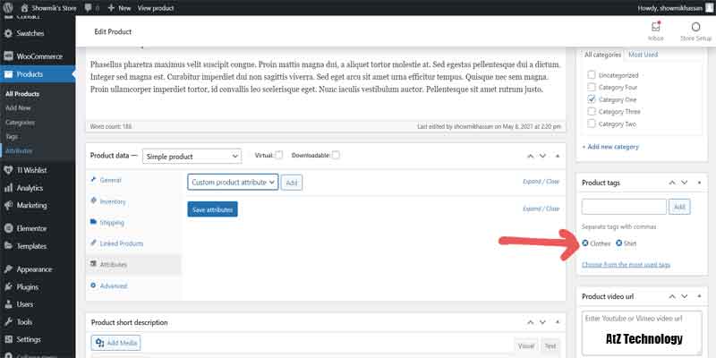 Now, after the category option, you can add some tags to your products. Tags are similar words to the products that people search for. I’ll add two tags named Shirt and Clothes.