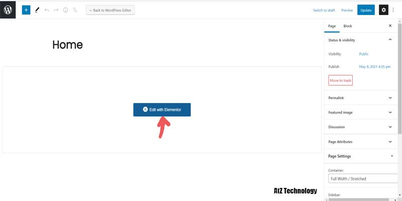 As I already mentioned earlier, we would use Elementor page builder to design. So, click on edit with elementor. It’ll take you to the default elementor dashboard. From there, you can add and customize different types of elements and design your homepage.