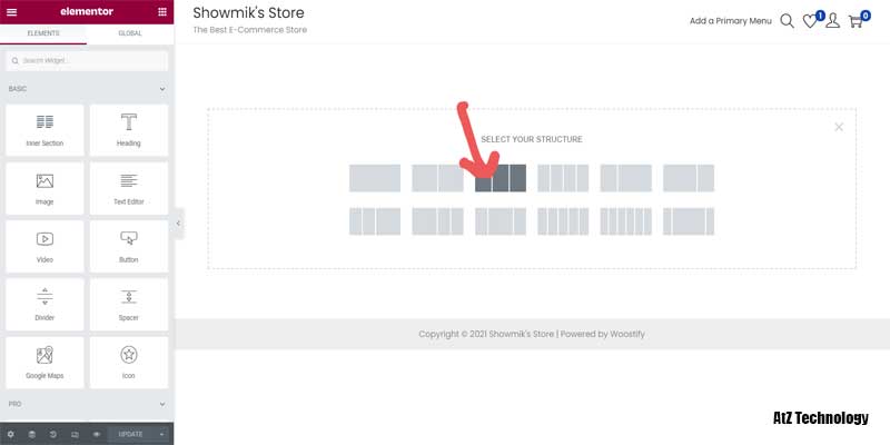 You click on this plus button and select how many columns you want in that section. For example, we want 3 columns. So, choose 3 columns.