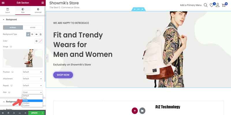 Head towards the size and select cover, and your image will look fit in the background. Now, click on update, and your progress will be saved.