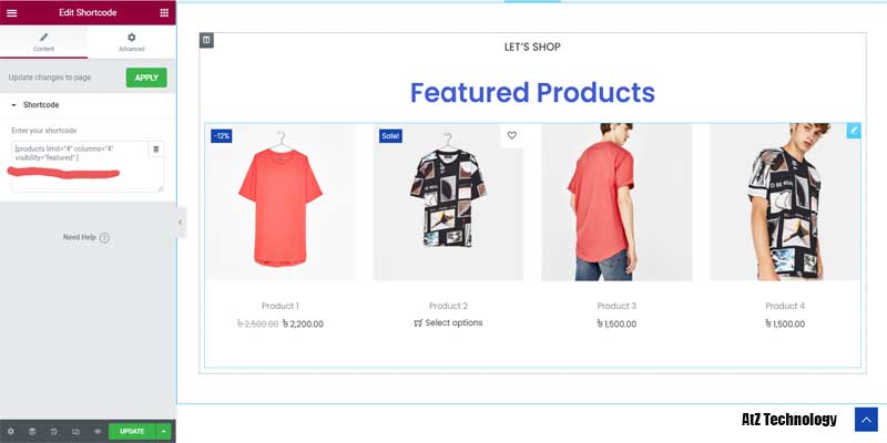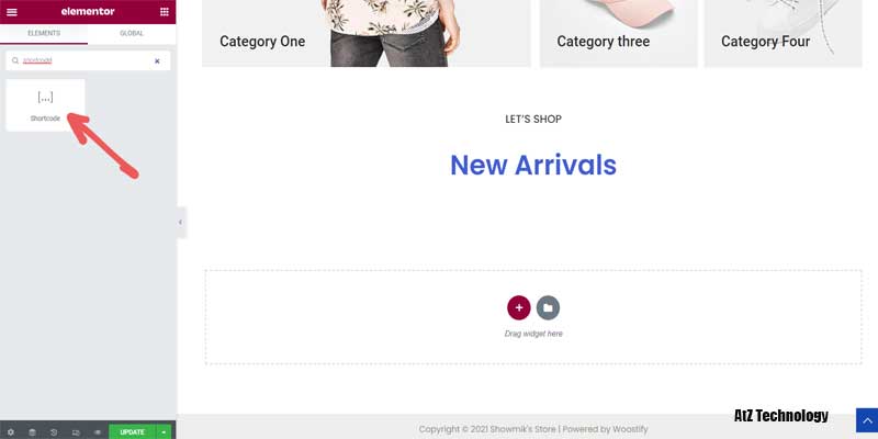 If you can’t find any element, just type on the search bar. Drag it into the section, and you can WooCommerce different shortcodes to display your shop’s product. You can find so many shortcodes for various aspects here –