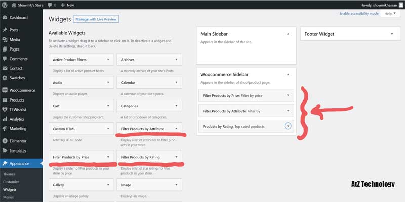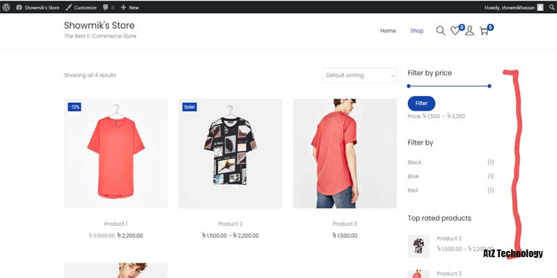 Your shop page will appear with a sidebar on the right side but no widget will be there. So, let’s add some widget from the WordPress manage widget section.